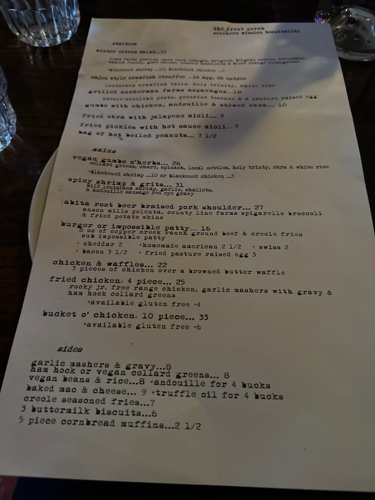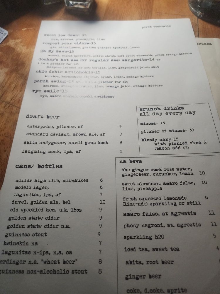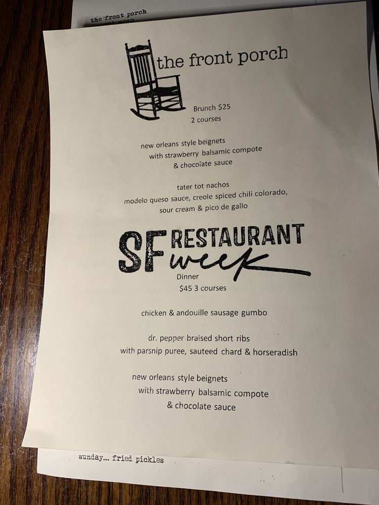 Introducing The Front Porch, a Southern-style eatery nestled in San Francisco. This charming spot offers a variety of mouthwatering dishes, from New Orleans-style beignets to juicy fried chicken and waffles. The menu features classics like shrimp and grits, chicken fried steak, and country breakfast, all served with a touch of Southern hospitality. Customers rave about the crispy fried okra, flavorful bucket of chicken, and delectable mac and cheese. The cozy ambience, stellar service, and diverse menu make The Front Porch a must-visit for lovers of Southern comfort food. Whether you're in the mood for a relaxing brunch or a hearty dinner, this neighborhood favorite is sure to delight your taste buds and leave you craving for more. Enjoy the perfect blend of flavors and ambiance at The Front Porch.
